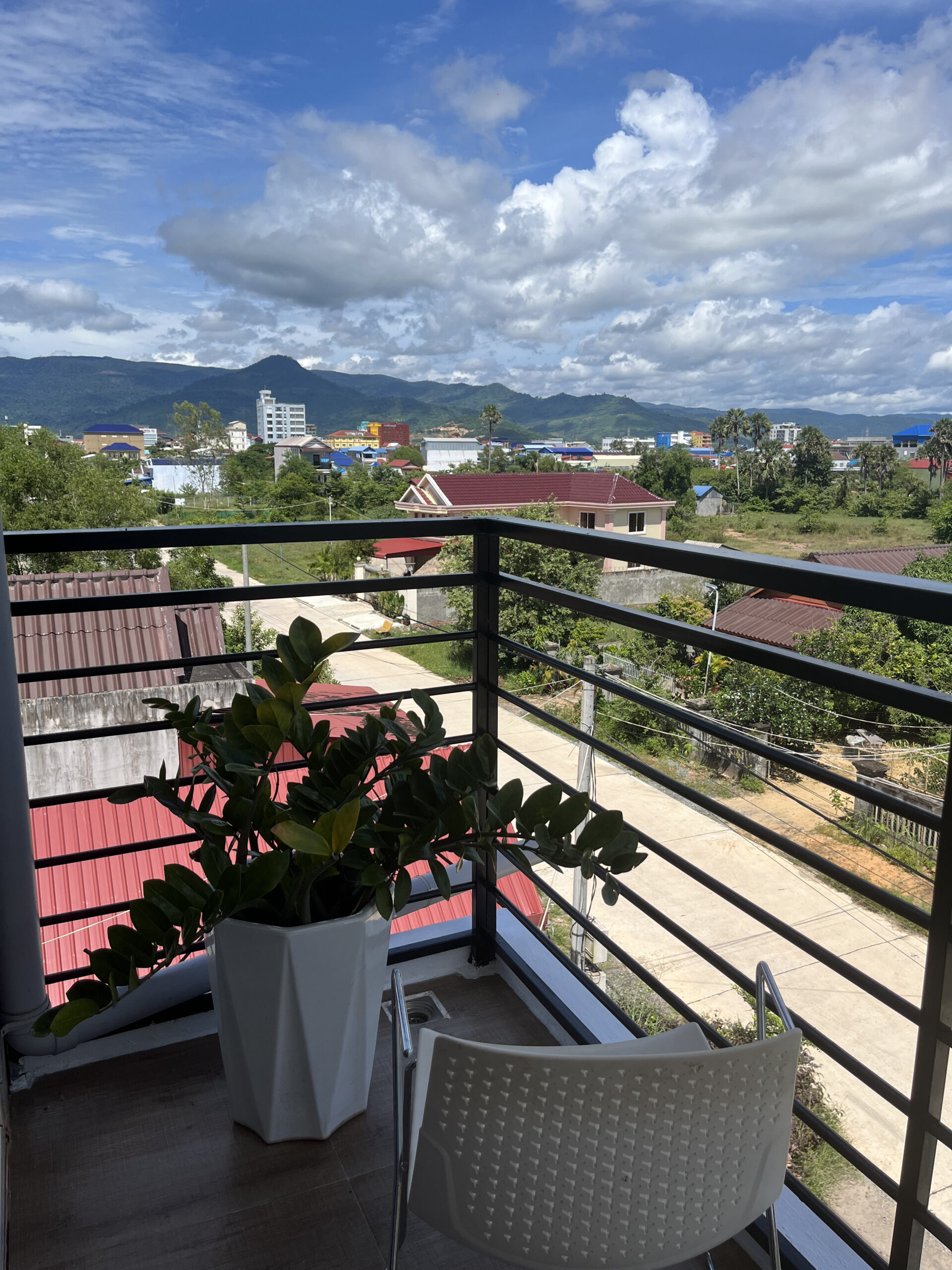 The room has a comfortable king-size double bed and air conditioning. Relax on the balcony and enjoy the view over a small lake and the city centre. Of course, the room has its own bathroom with shower and toilet.