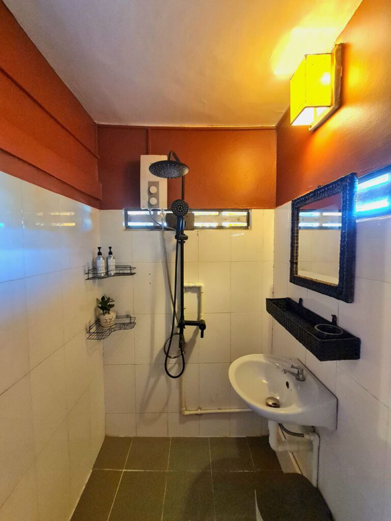The room has a comfortable queen-size double bed and air conditioning. Of course, the room has its own bathroom with shower and toilet.